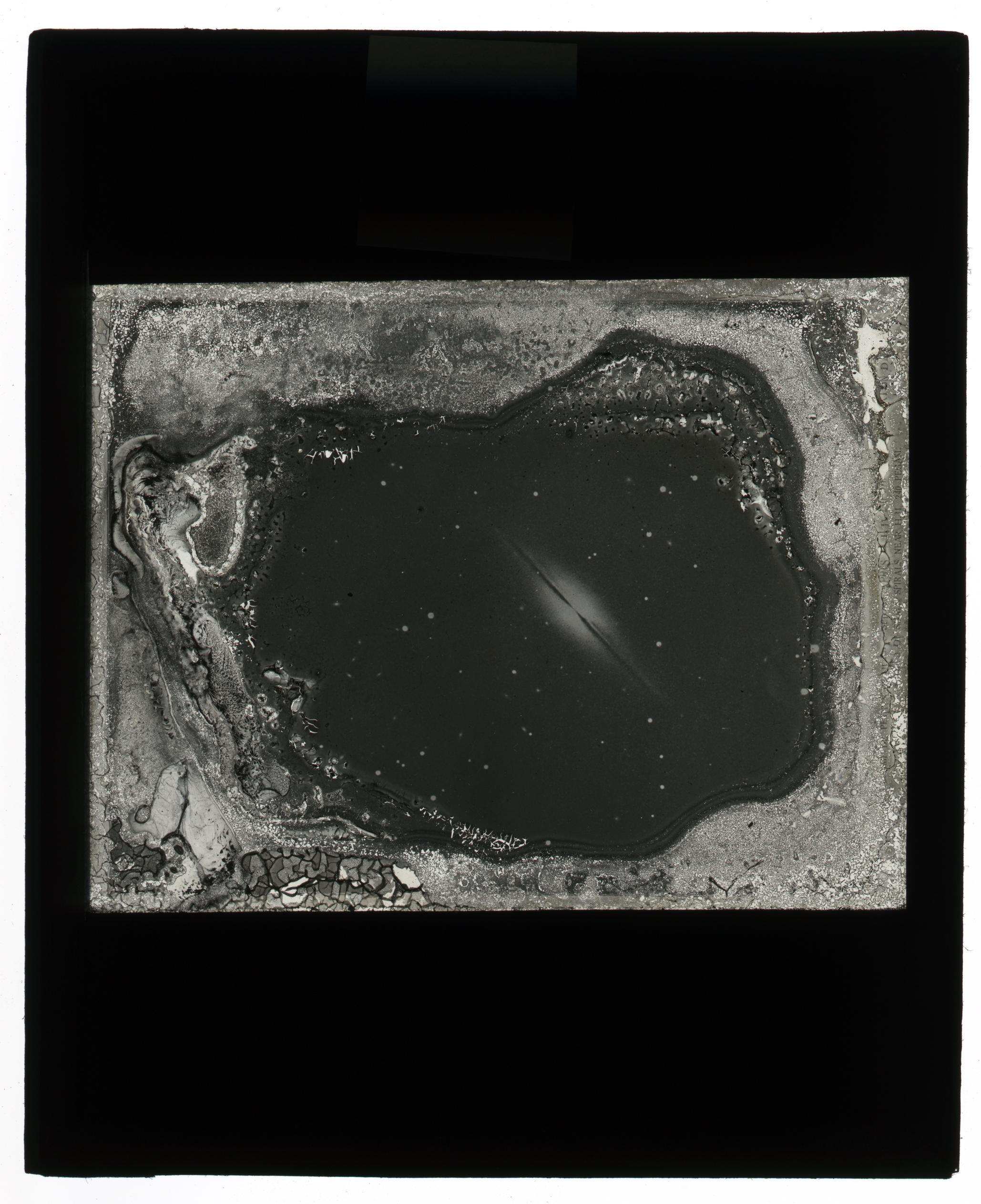This is a badly degraded slide containing what looks to be a spiral galaxy.